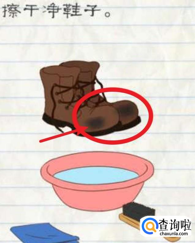 第46关,啥东西道具都不需要,用手指擦一下鞋子的二个地方就行了。