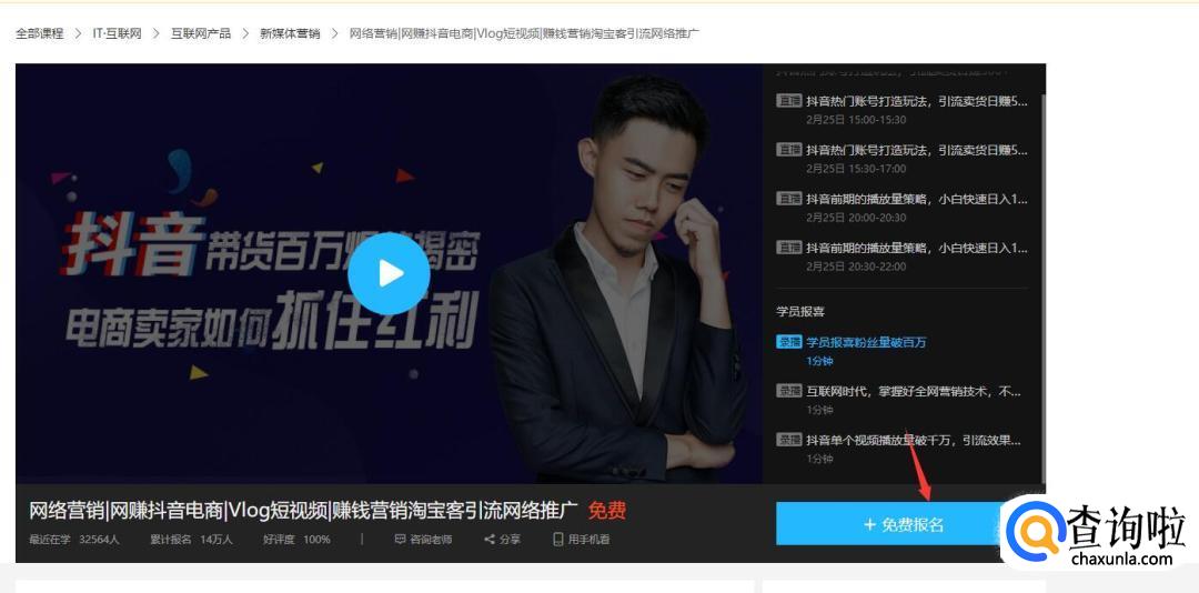 如果觉得课程不错,可以点击报名,大部分课程是免费的。