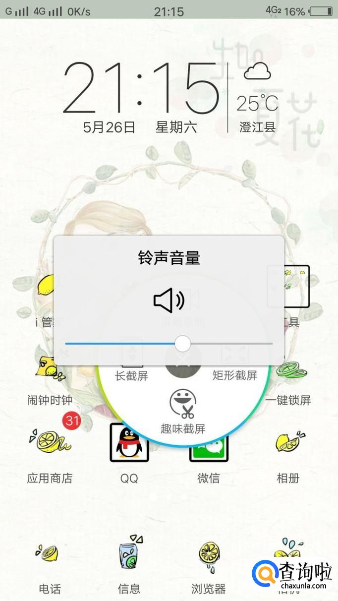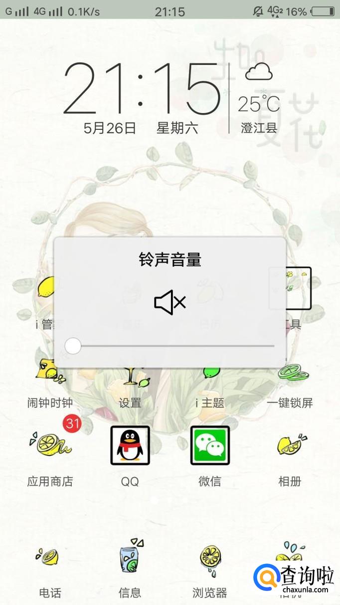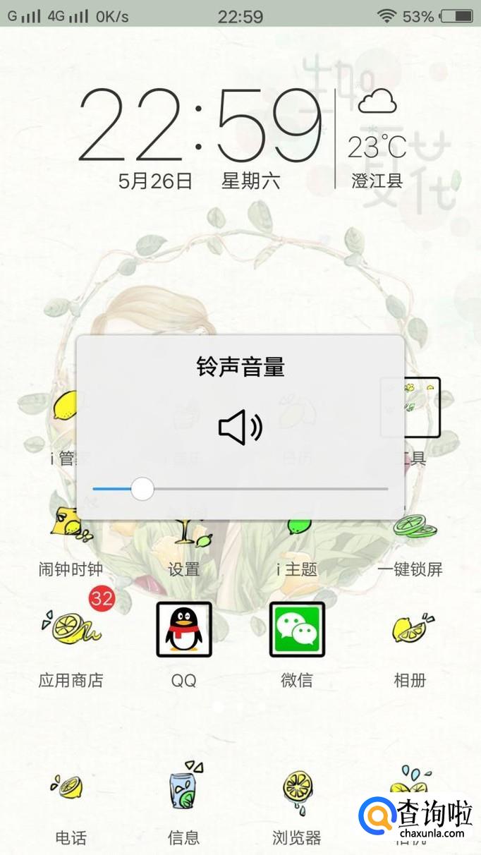 然后得保证手机屏幕是亮着,按音量键的上键,屏幕上就会出现铃声音量的图标,铃声音量就会随着按上键而增强