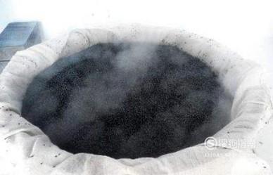 蒸好后将芝麻放到太阳底下晒,晒的时候要经常翻翻,好让芝麻晒得均匀,待晒干后,再将芝麻拿去蒸,蒸好再晒,如此往复9次。