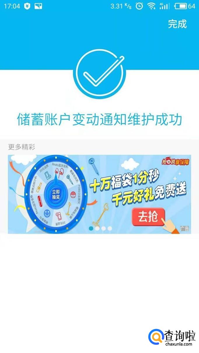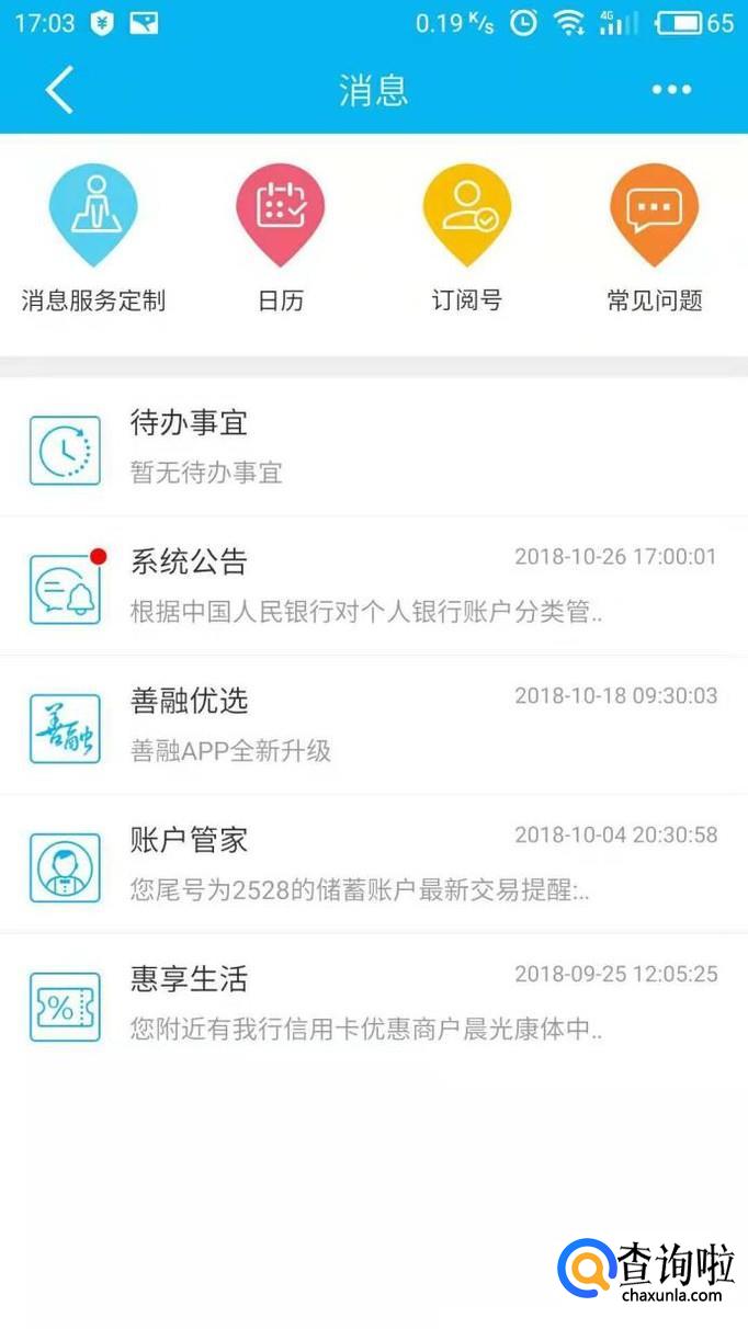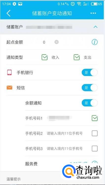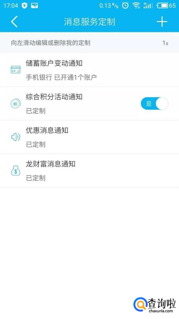 进入后我们点击“消息服务定制”进入,然后选择“储蓄账户变动通知”。