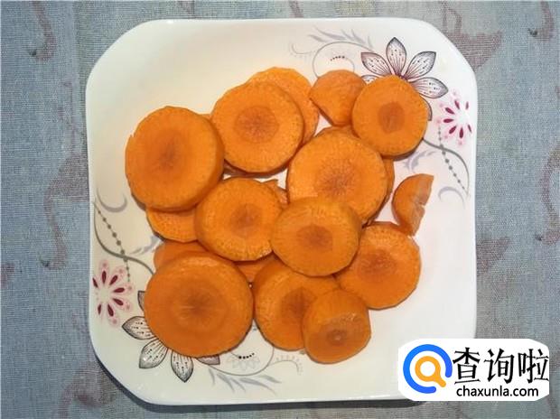 红萝卜削皮,切成圆圈形状,备用。