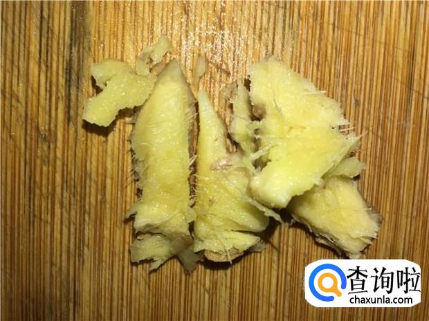 老姜用刀背拍扁,切片,备用。