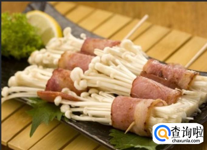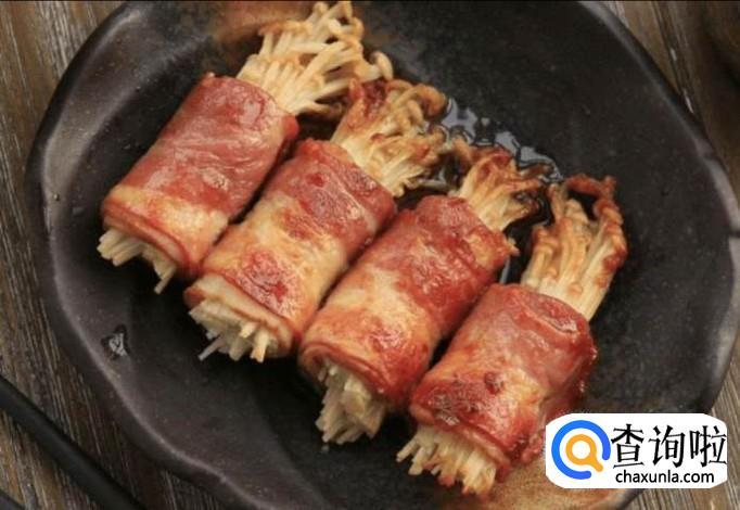 金针菇,培根,牙签,调味料