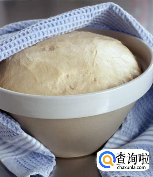 将盆中倒入适量的温水,放入适量面粉和适量酵母,和成光滑的面团,搁置在盆中,用布盖上,使面团稍发一会儿。