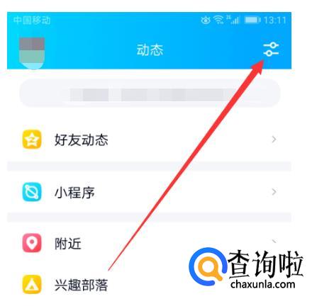 手机上打开qq,进入QQ首页找到右上角动态选项。