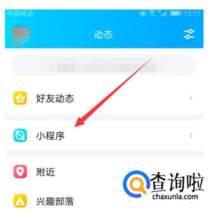 点击动态选项,打开的动态界面。在这个界面可以看到小程序选项。