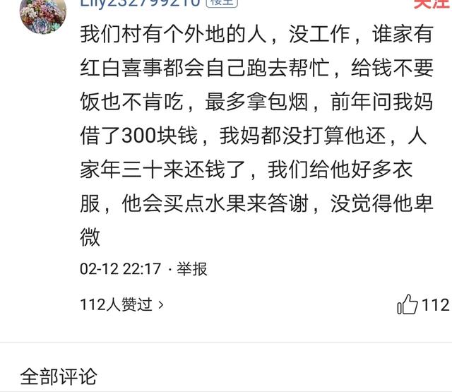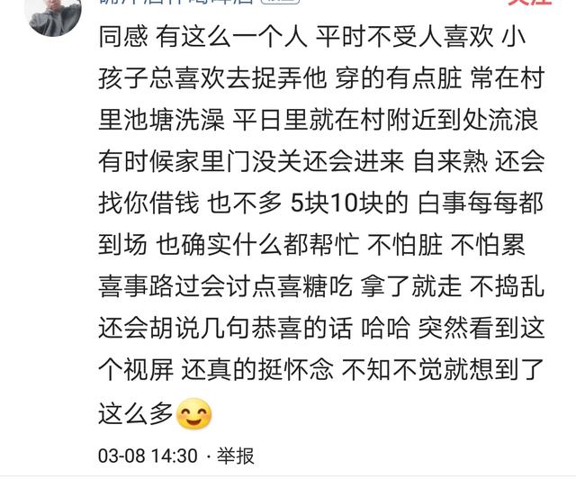 他们给人的形象总是一副脏兮兮的样子,由于脑子不灵光,所以没有人愿意搭理他,只当他不存在。但为人善良给人的评价不错,只要你不惹他,他都不会动手打人。一般老人都会非常尊重他。平时人们有事第一个想到他,好事总把他遗忘,谁家有白事总会第一个来帮忙。不知道你们村有没有这样的人呢?如果有的话请在下方留言,他们虽然脑袋不好使,却是一个好人,一个村的守护者。