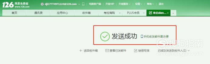 在发送邮件后会有如下图所示的提醒,就代表邮件已经发送成功了。