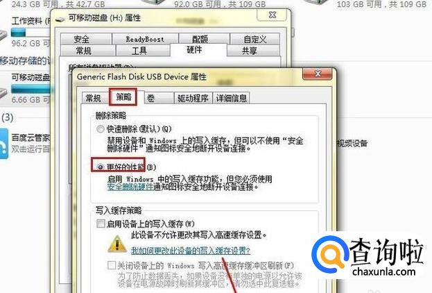 双击带有“USB”字样的磁盘驱动器,进入磁盘驱动器属性界面。在界面上找到“策略”并点击。选择“更好的性能”并确认。