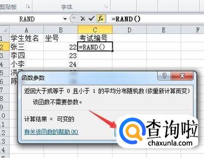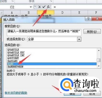 点击插入函数按钮,点击列表框中的RAND函数,确定。