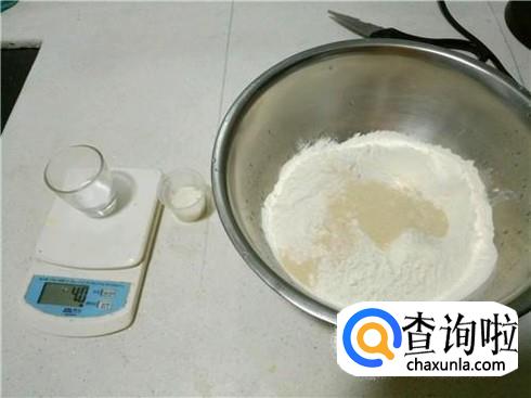 面粉放进盆子里,撒上一些食盐,不要太多,一小勺就可以了,或匀之后,把刚刚做好的碱面水慢慢倒进去,一边倒一边揉面。