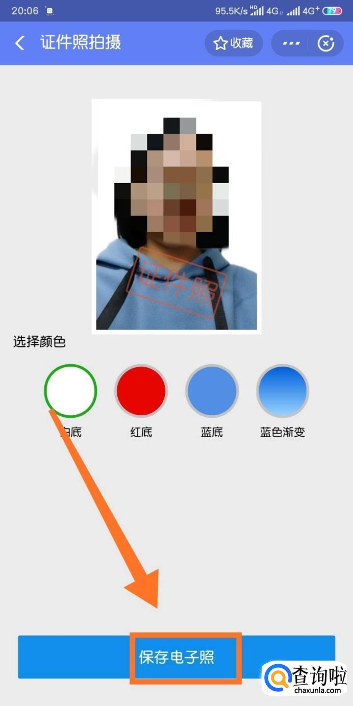 在这儿我们可以选择照片的背景颜色,选好之后我们点击【保存电子照】,
