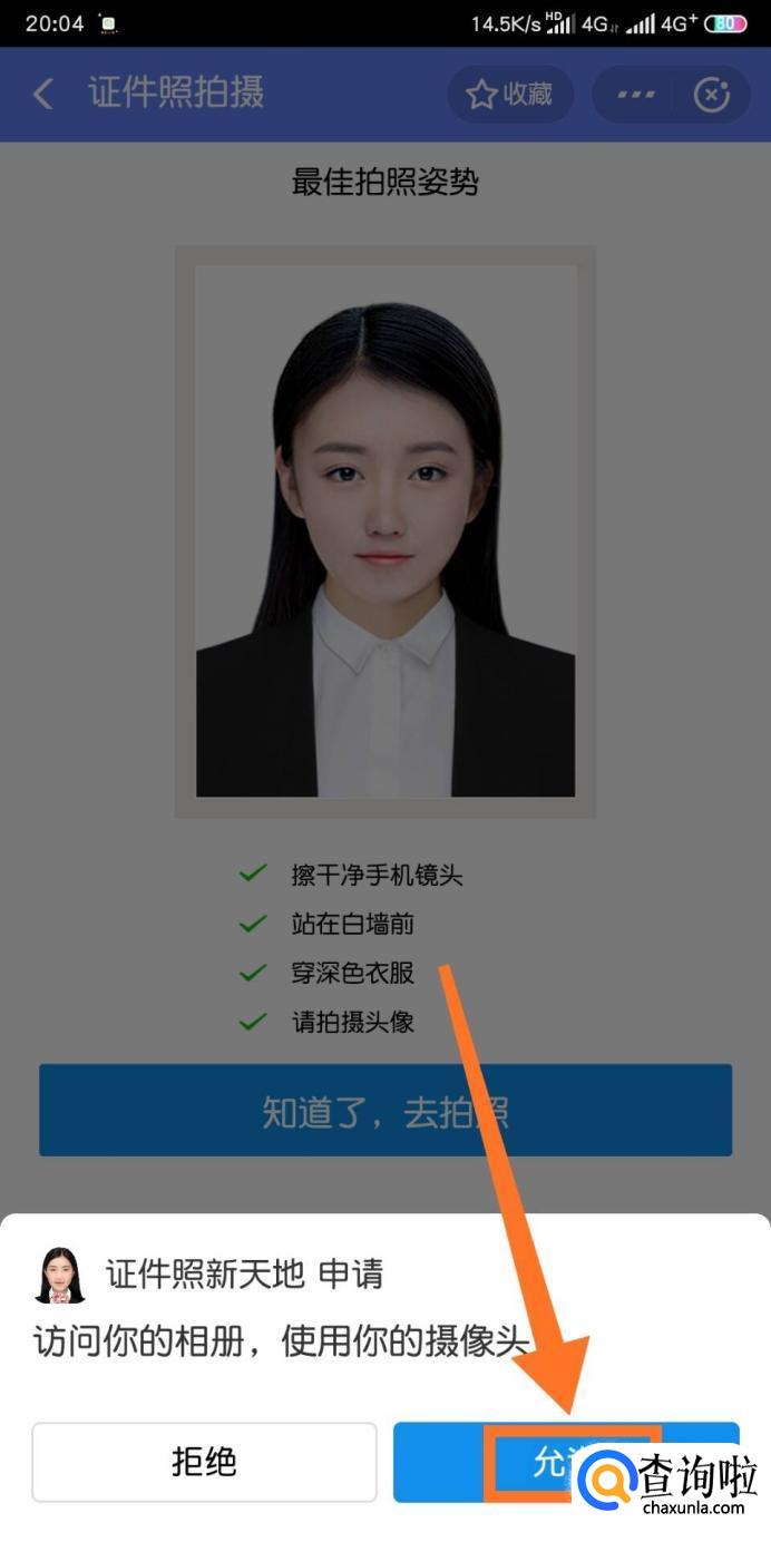 然后我们点击【知道了,去拍照】——【允许】——【拍摄照片】。