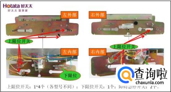 上限位及下限位的调整(松开两颗固定螺丝移动开关位置,调好后勿必拧回紧);