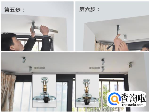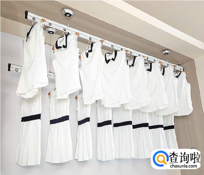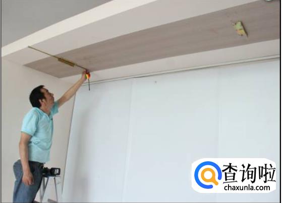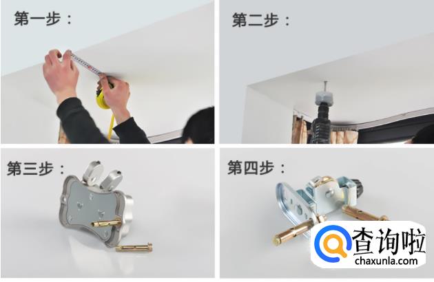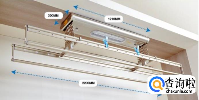 在需安装的阳台顶上,用钢尺测量一下阳台顶上照明灯的直径,然后在灯的两边15cm-30cm之间做一安装记号(长度根据阳台大小决定)。再测量一下记号与阳台边沿的距离,根据这个距离确定顶座安装的宽度。再以灯为中心测量阳台长度,根据晾衣杆长度确定灯两边平分80cm—100cm,再与宽度的测量距离有四个交叉点,这四个交叉点就是衣架顶座的安装位置。位置确定好后,用电钻钻孔,钻完孔后用膨胀螺丝先固定好四个顶座(如杆长超过常规尺寸,这个距离做相应调节)。【阳台升降晾衣架尺寸】