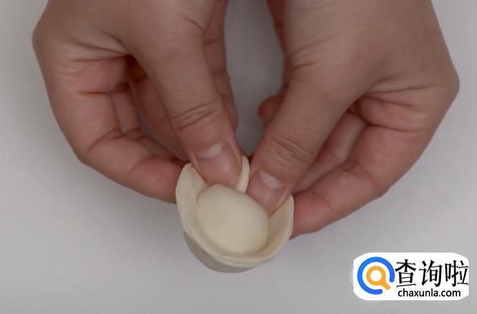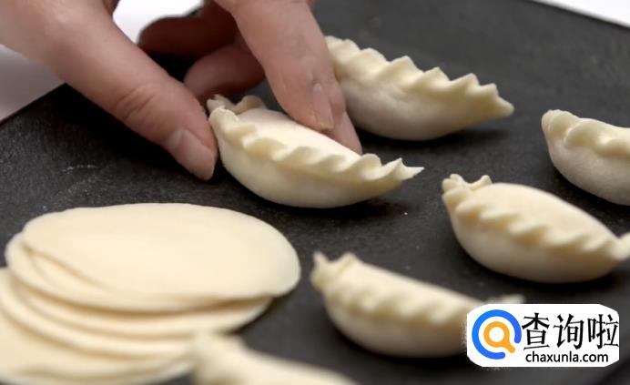 这样,花瓣一样的饺子就包好了。