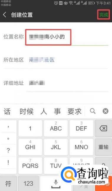 弹出的界面,我们就可以自定义位置了,我们将位置名称进行自定义,然后我们点击完成,这样我们就自定义好了。