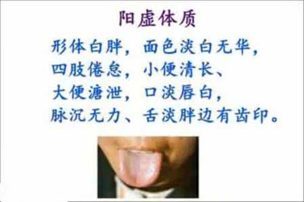 阳虚指机体阳气虚衰,机能减退或衰弱,代谢活动减退,机体反应性低下,阳热不足的病理现象。阳气有温暖肢体、脏腑的作用,如果阳虚则机体功能减退,容易出现虚寒的征象。常见的有胃阳虚、脾阳虚、肾阳虚等。阳虚主证为畏寒肢冷、面色苍白、大便溏薄、小便清长、脉沉微无力舌齿淡嫩,舌形胖,舌苔白,舌苔厚等。