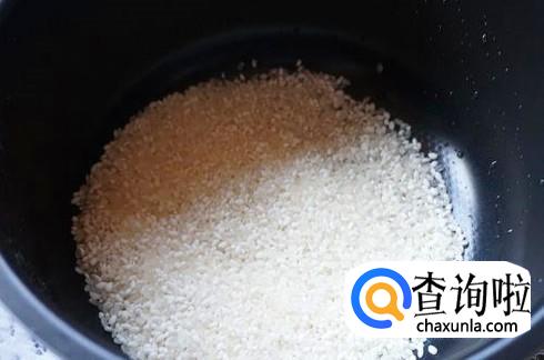 大米淘洗干净,然后浸泡半小时,放进电饭煲里面。