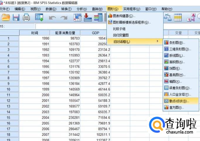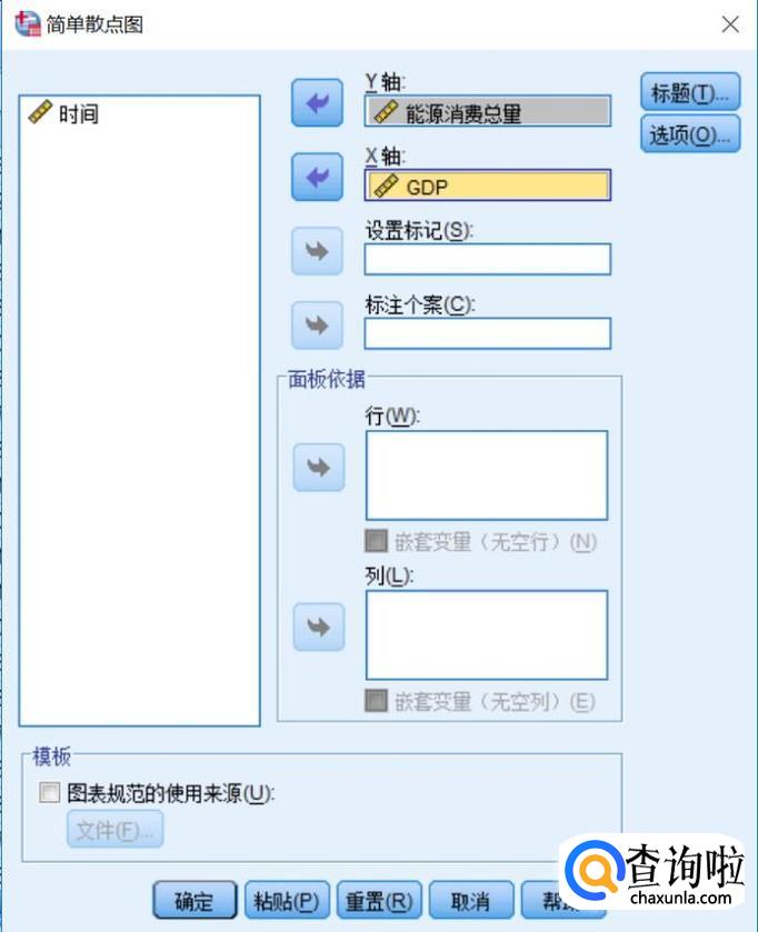 纵轴选择“能源消费总量”,横轴选择“GDP",点击”确定”。