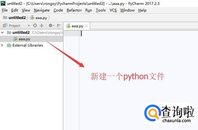 首先打开Pycharm软件,新建一个python文件,如下图所示