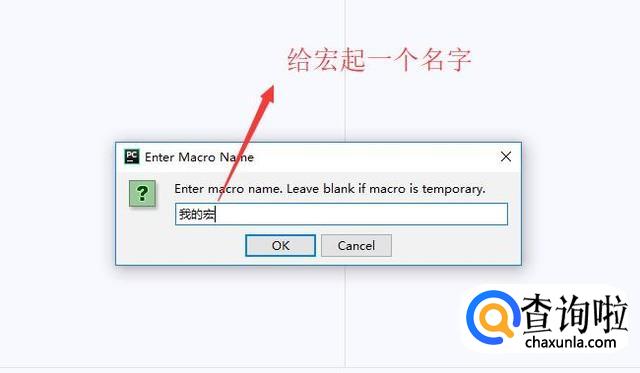接下来会弹出一个给宏命名的界面,我们给刚才录制的宏起一个名字点击OK按钮即可,如下图所示