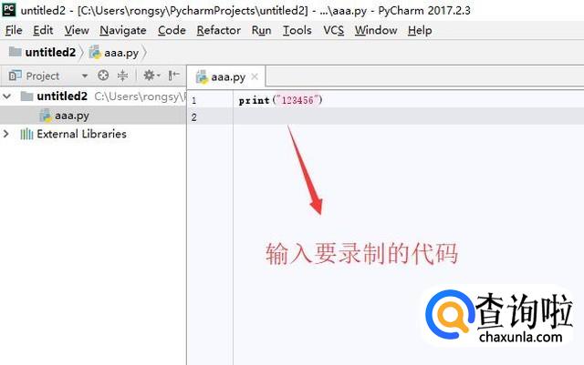 然后我们开始在python文件中写入一些常用的代码,小编这里简单的写了个输出语句,大家可以根据自己的需求编写,如下图所示