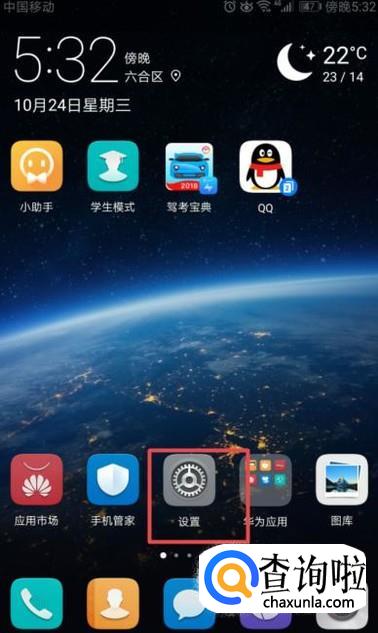 首先,我们打开我们的手机,然后我们点击设置,如图所示;