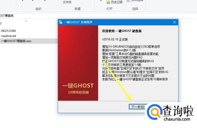 下载完成之后打开文件夹,点击 一键ghost硬盘版.exe进行安装