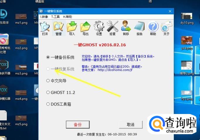 安装完成后就会自动启动软件,我们选择第二项 一键恢复系统(小编的系统盘空间不足,如遇到这种情况就先清理系统盘),然后点击恢复