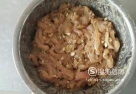 将切好的鸡胸肉放入盆中,加入盐,料酒,胡椒粉,淀粉腌制一小时,我喜欢吃蒜所以还加了点蒜。