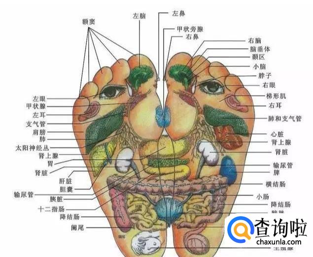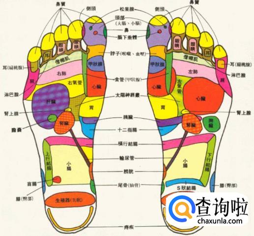 首先,我们要找到一张脚部反射区的穴位图,查看六经络位置,以及在经络上分布的穴位在哪里。