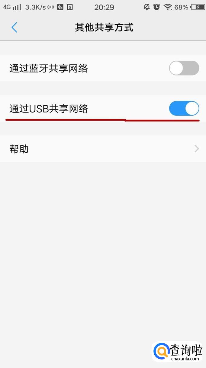 打开USB共享网络,这样电脑就能上网了。