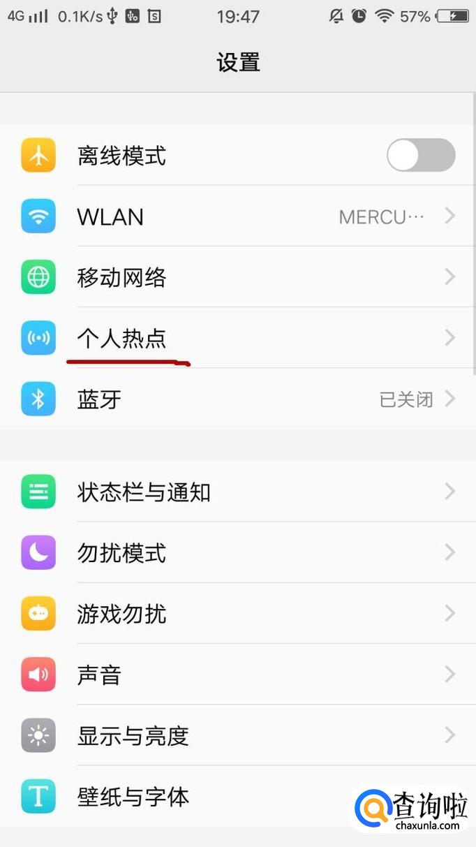 然后找到手机设置里的【个人热点】或者网络共享