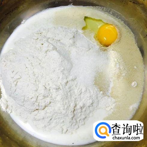 然后我们就要揉面团,在面团中加入一些酵母粉有利于面团比较柔软,为了好吃我们可以在面团中加入一个鸡蛋。