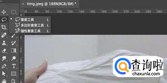 打开电脑中的PS软件,拖入需要处理的图片,然后在工具中选择“套索工具”
