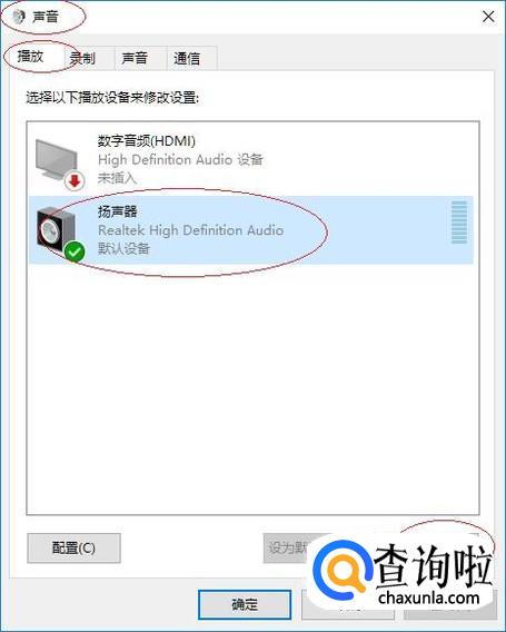 如图所示,弹出"声音"对话框。选择"播放→扬声器"项,点击下侧"属性"按钮。