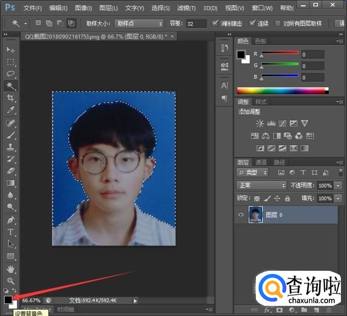 接下来,大家用鼠标在证件照的背景上点击,背景就选出来了。