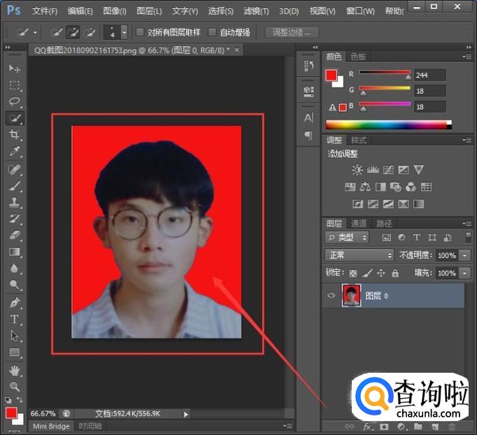 首先,大家打开photoshop,打开证件照,如图所示。