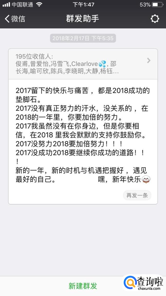 选择我们要群发的好友,这里上限是200个,大家如果想发送超过200个就需要多发几次了
