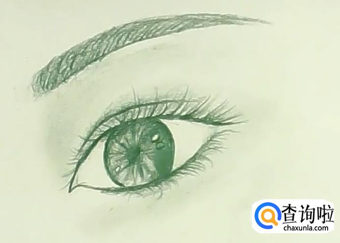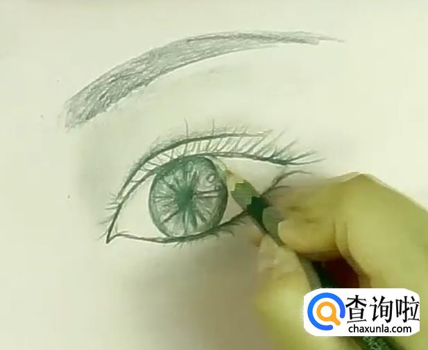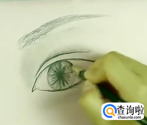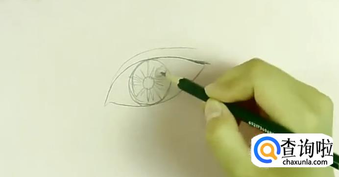 再就是加粗眼睛的线条,眼珠的部分画出中间的瞳孔,留出适当的空白,再画出发散的线条。