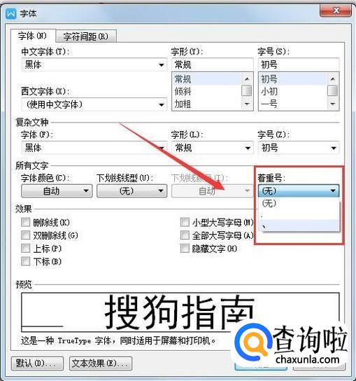 我们选择需要的着重号样式,有上着重号和下着重号可选,