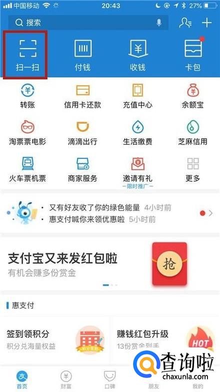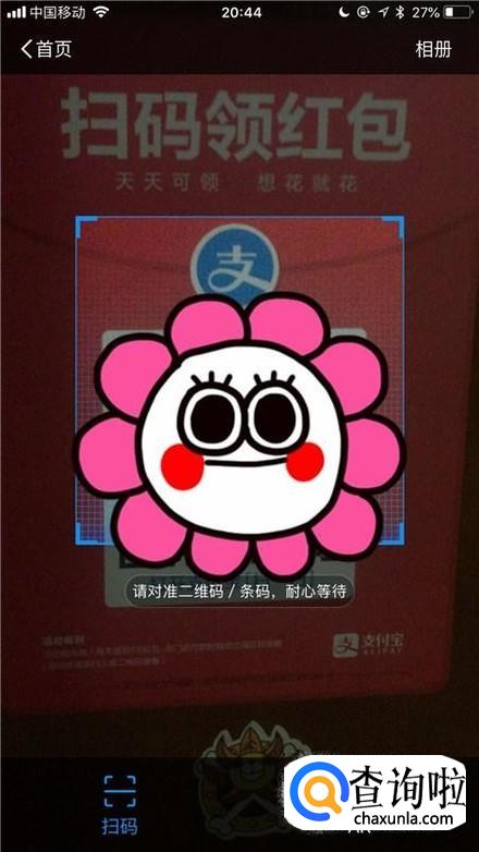 将我们手机的摄像头对着商家的红包码,完成扫描动作。