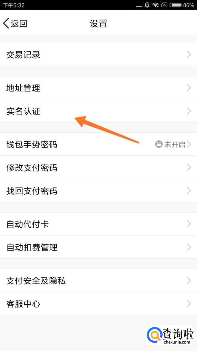 来到设置页面,我们再点击实名认证