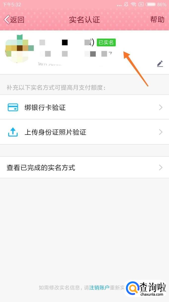 在下一个页面中,我们就可以查看实名认证信息了。