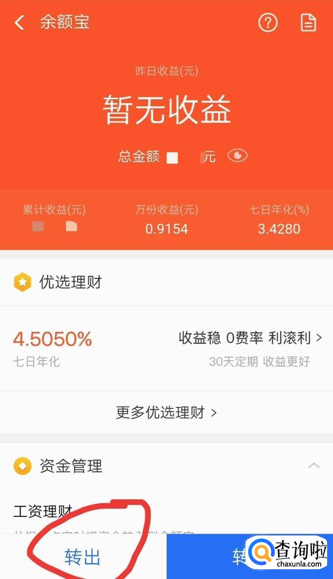 在“转出”页面的输入转出的金额那里就可以看到免费转出到银行卡的额度。