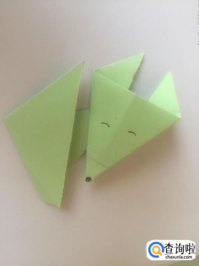 最后我们再画上狐狸的眼睛,还有鼻子和嘴巴,我们的折纸就完成了。