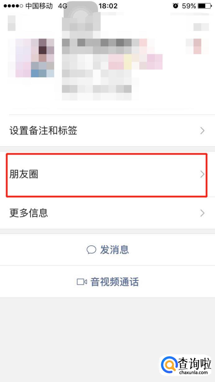 首先你想要知道别人有没有屏蔽你,先看一下有没有删除你。举个例子:对方没有删除你,打开他的个人信息页,显示的如图所示的样子,有【朋友圈】栏。