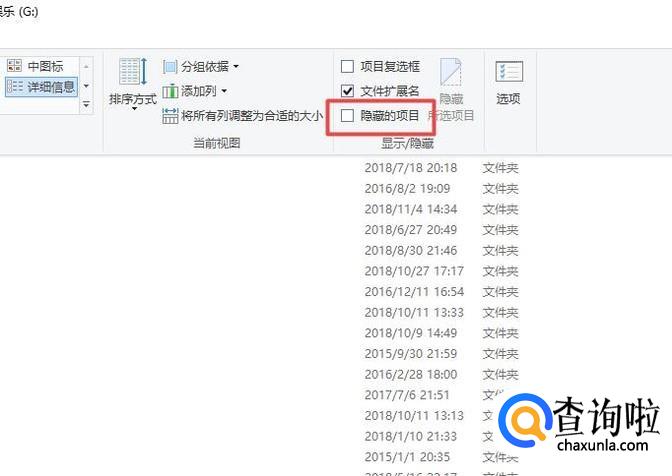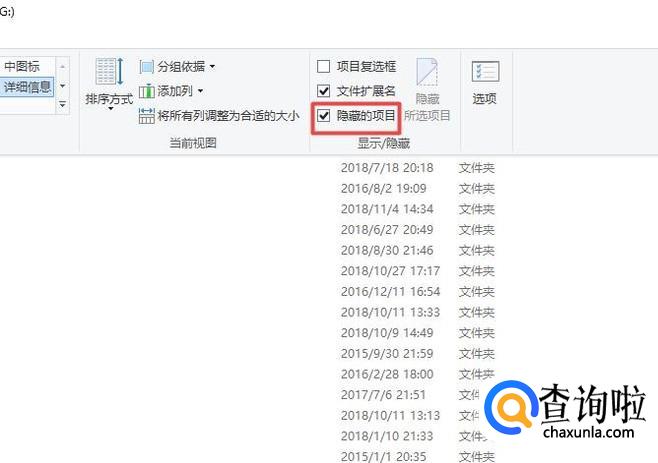 然后我们点击隐藏的项目的勾选框;
